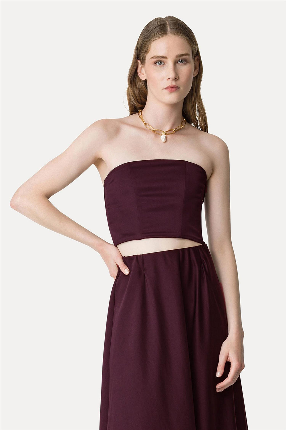 Duchesse Bustier Top With Sash Bordeaux