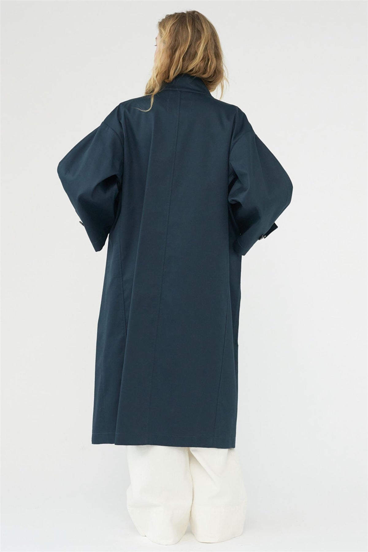 This coat is made from water-resistant cotton twill, woven to repel drizzle and light rain. A solid two-way metal zipper ensures ease of wear and practicality, for example when biking. With double-end zippers, it is important to align the split end correctly before zipping.