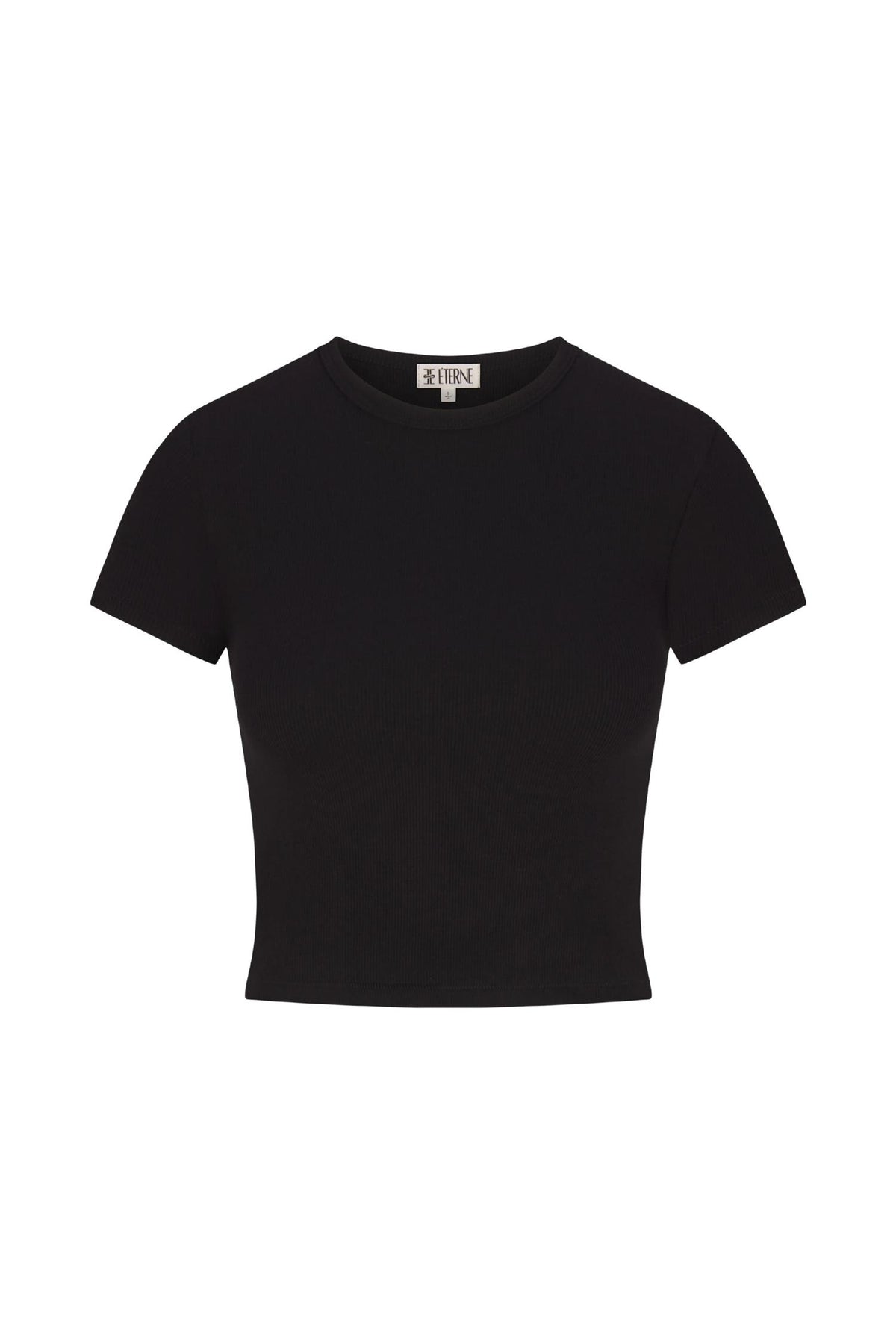 ÉTERNE's Short Sleeve Baby Tee is crafted from butter-soft ribbed fabric, offering a slim fit and slightly cropped length; an elevated essential for everyday wear.