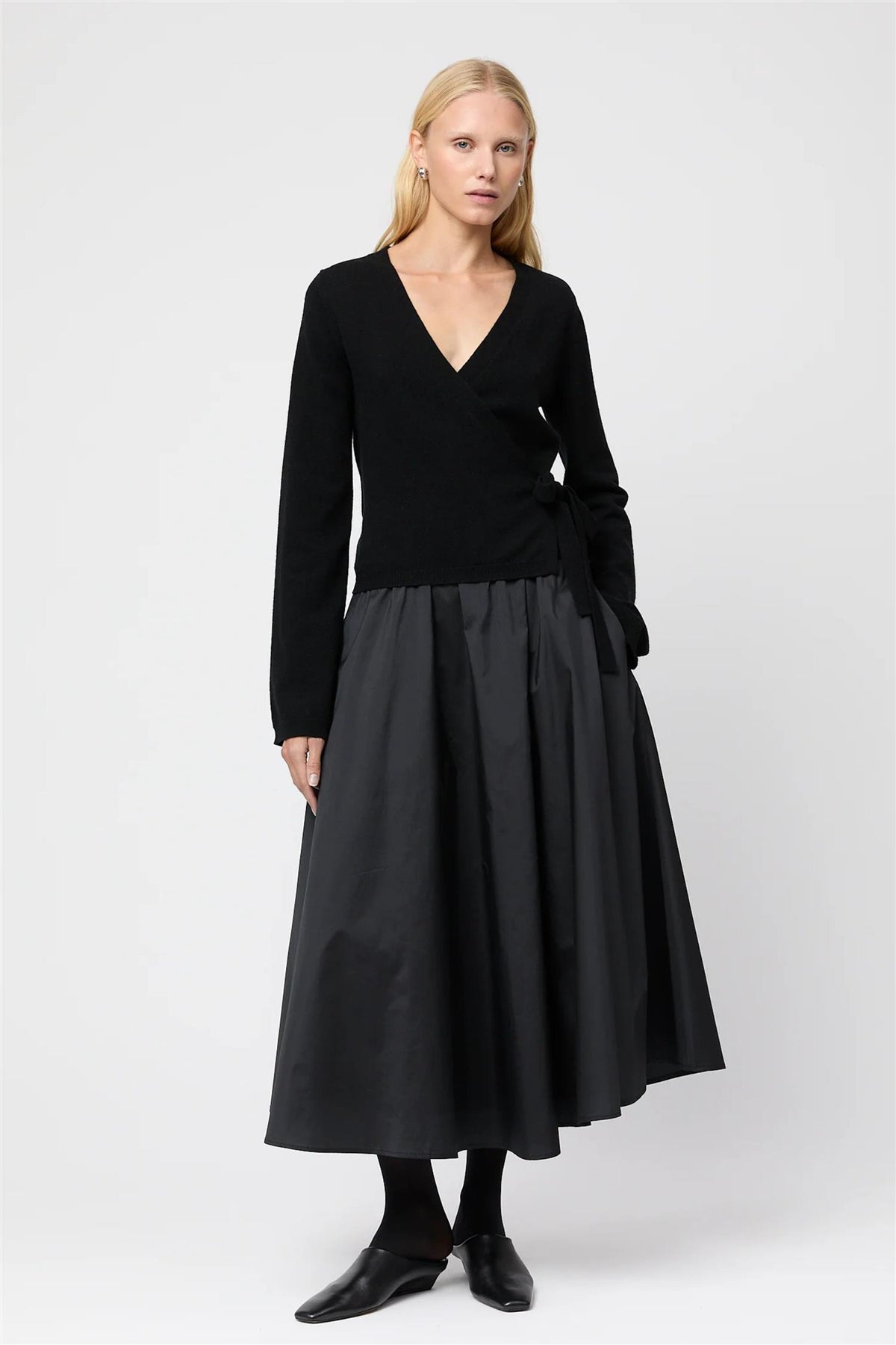 The FWSS Ballet Wrap Cardigan is crafted from extrafine merino wool. Inspired by classic ballet dressing, it features a wrap waist tie, bell sleeves, and refined rib trims. Designed for effortless layering and seasonless wear, this timeless cardigan brings elegance and ease to the wardrobe.
