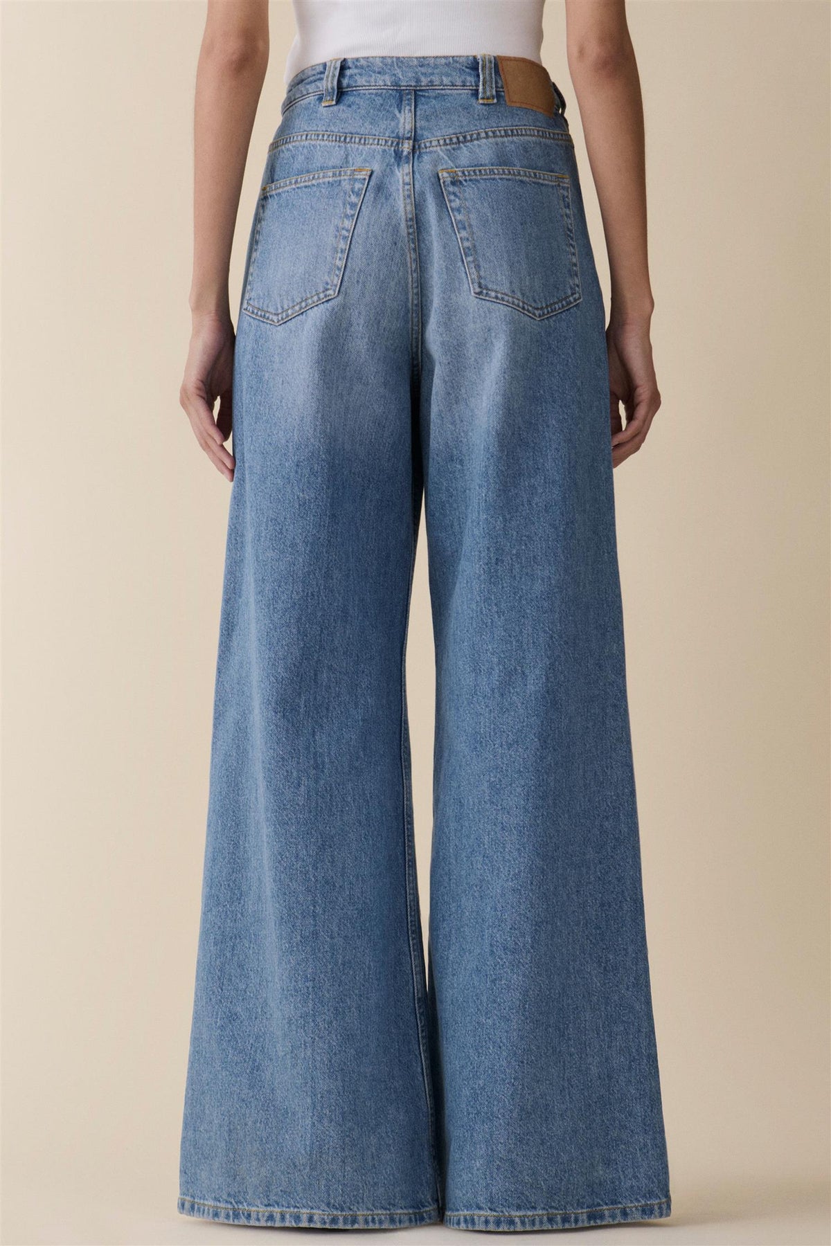 'Alfama' is a high-waist denim with a wide flared elegant silhouette. Featuring a fitted top, zip fly and slightly longer leg.