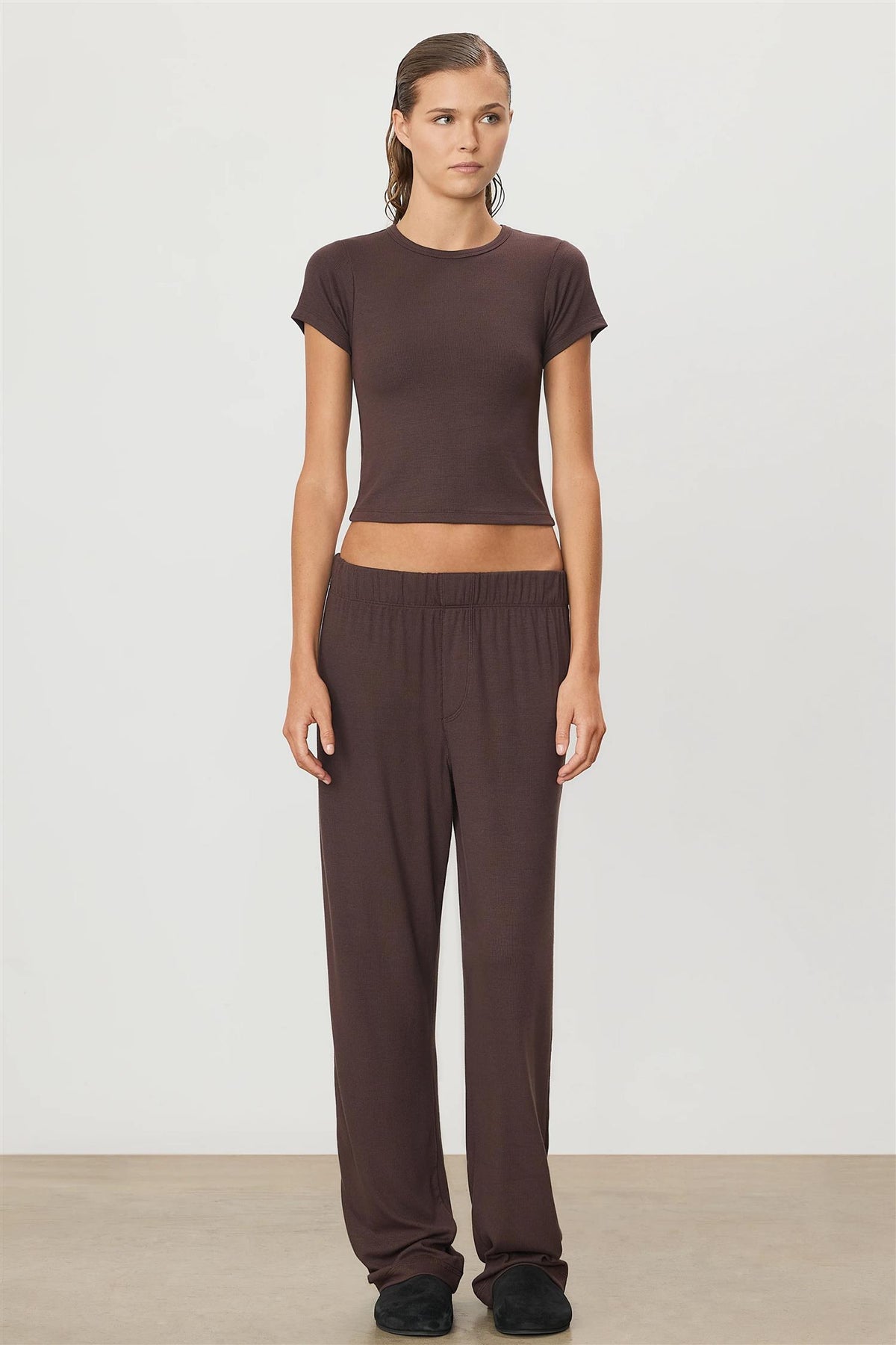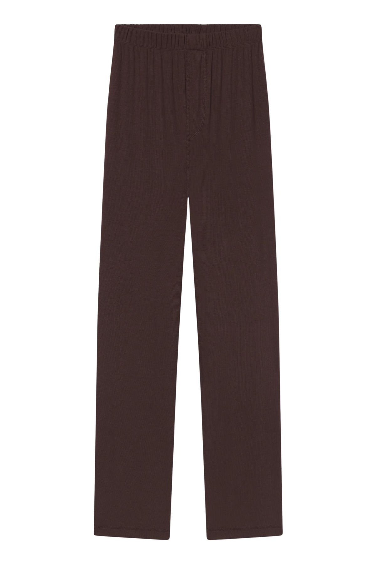 ÉTERNE's Lounge Pant is crafted from butter-soft ribbed fabric, offering a relaxed fit and signature long length; an elevated essential for everyday wear.