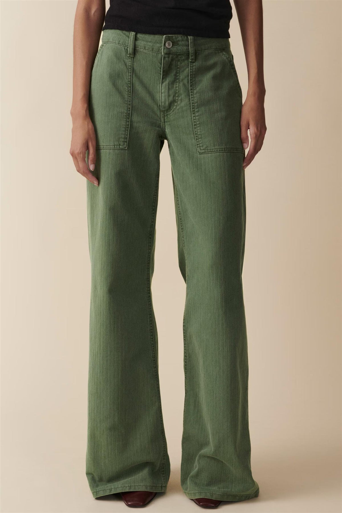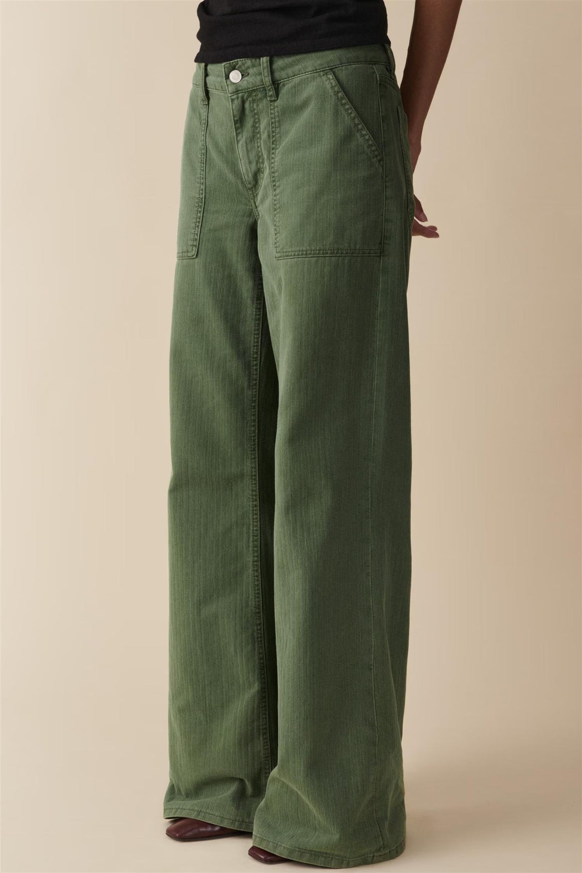 'Guell' is a carpenter-inspired flare fit with refined workwear details. It features a low-rise, extra-long loose-leg flare, front and back patch pockets.