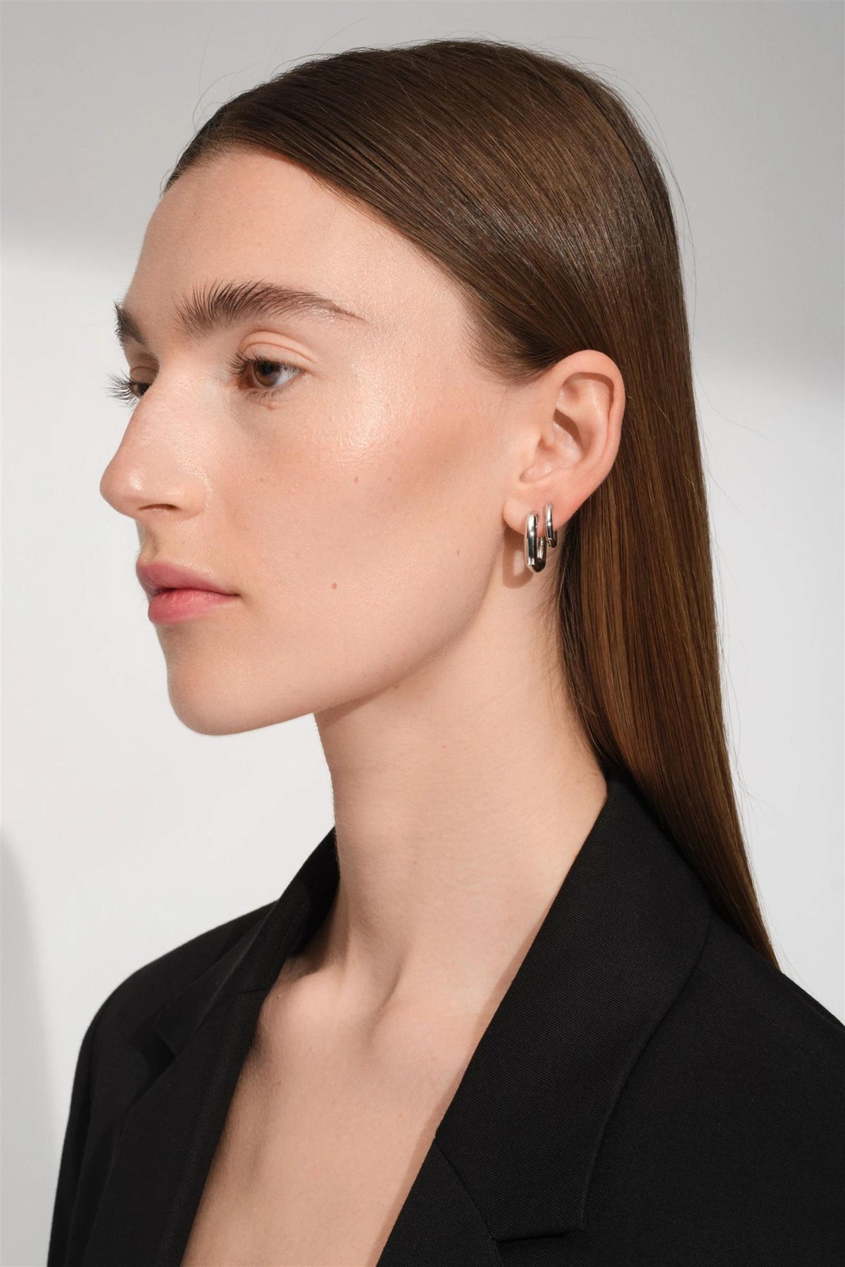 Made with 925 sterling silver in a polished white rhodium plating. All precious metals are 100% recycled.
