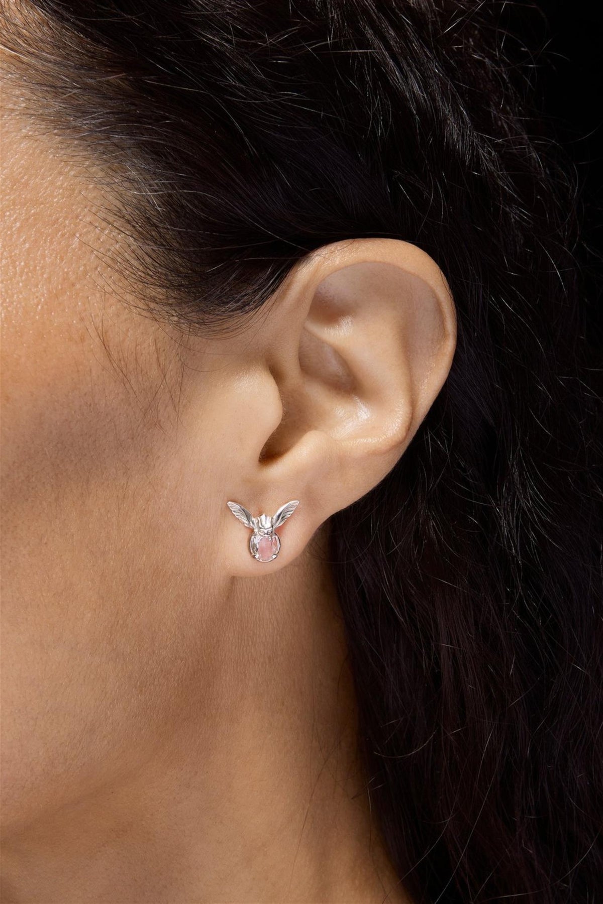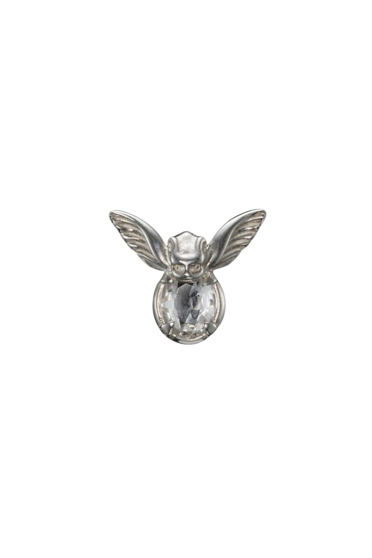 Tiny Gargoyle Ear Stud Silver Clear Quartz