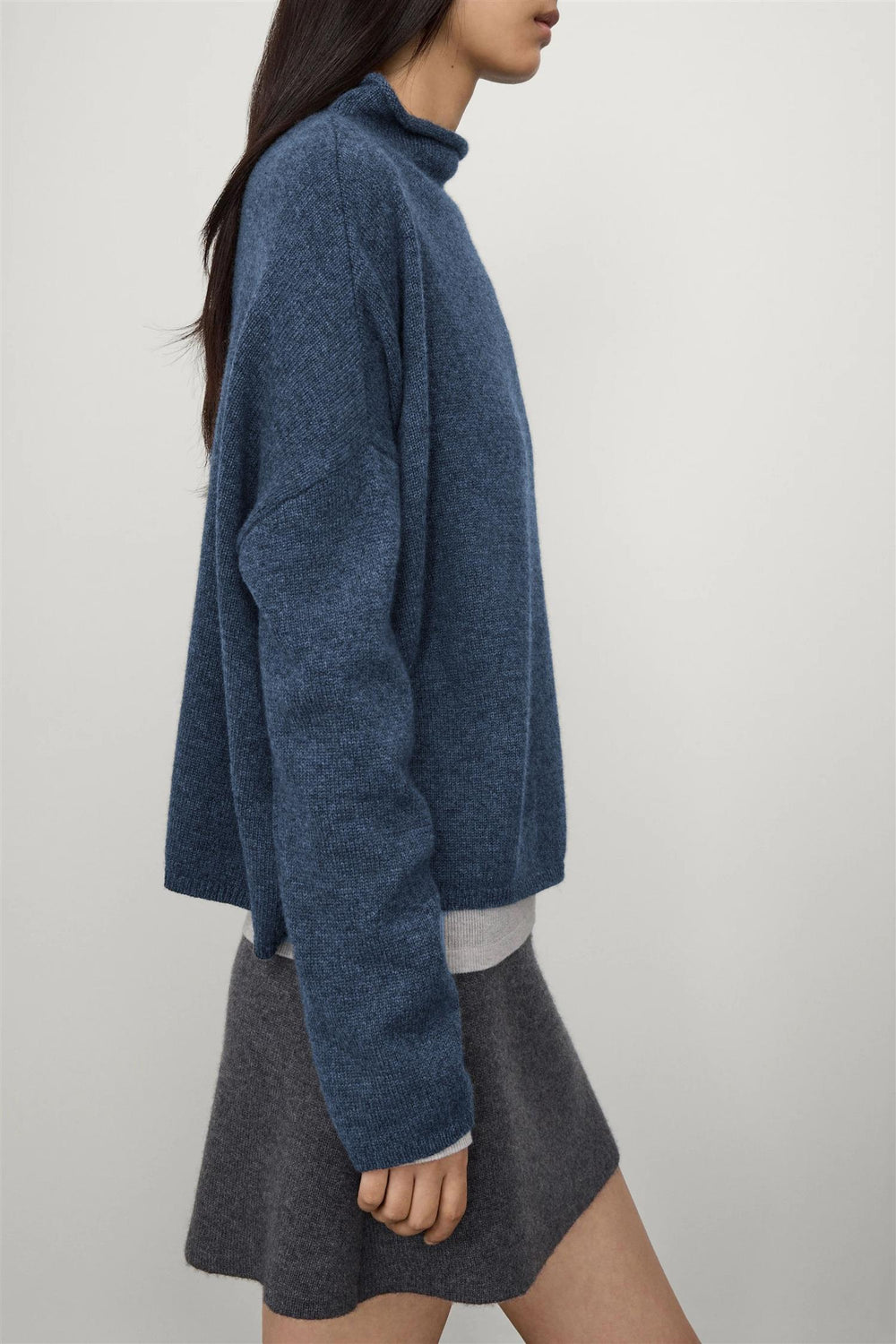 Sandy Sweater has a straight fit with dropped shoulders and a raw hem mock neck. The relaxed silhouette is knitted in middleweight cashmere, falling effortlessly against your skin.