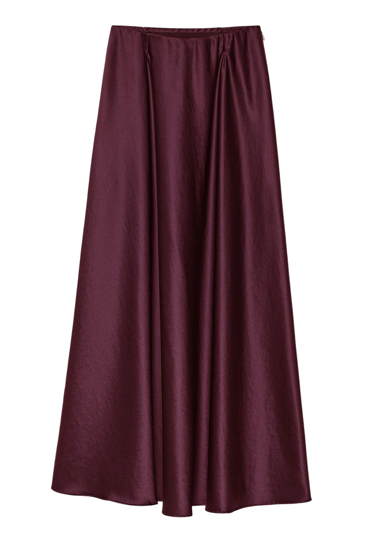 Loose and flared with a subtle hammered texture, this duchesse long skirt brings effortless elegance to any occasion. Its pristine aesthetic is complemented by a neat elasticated insert at the back of the waist, balancing modern ease with timeless allure. Designed to flow with graceful movement, it captures both contemporary appeal and a touch of vintage charm.