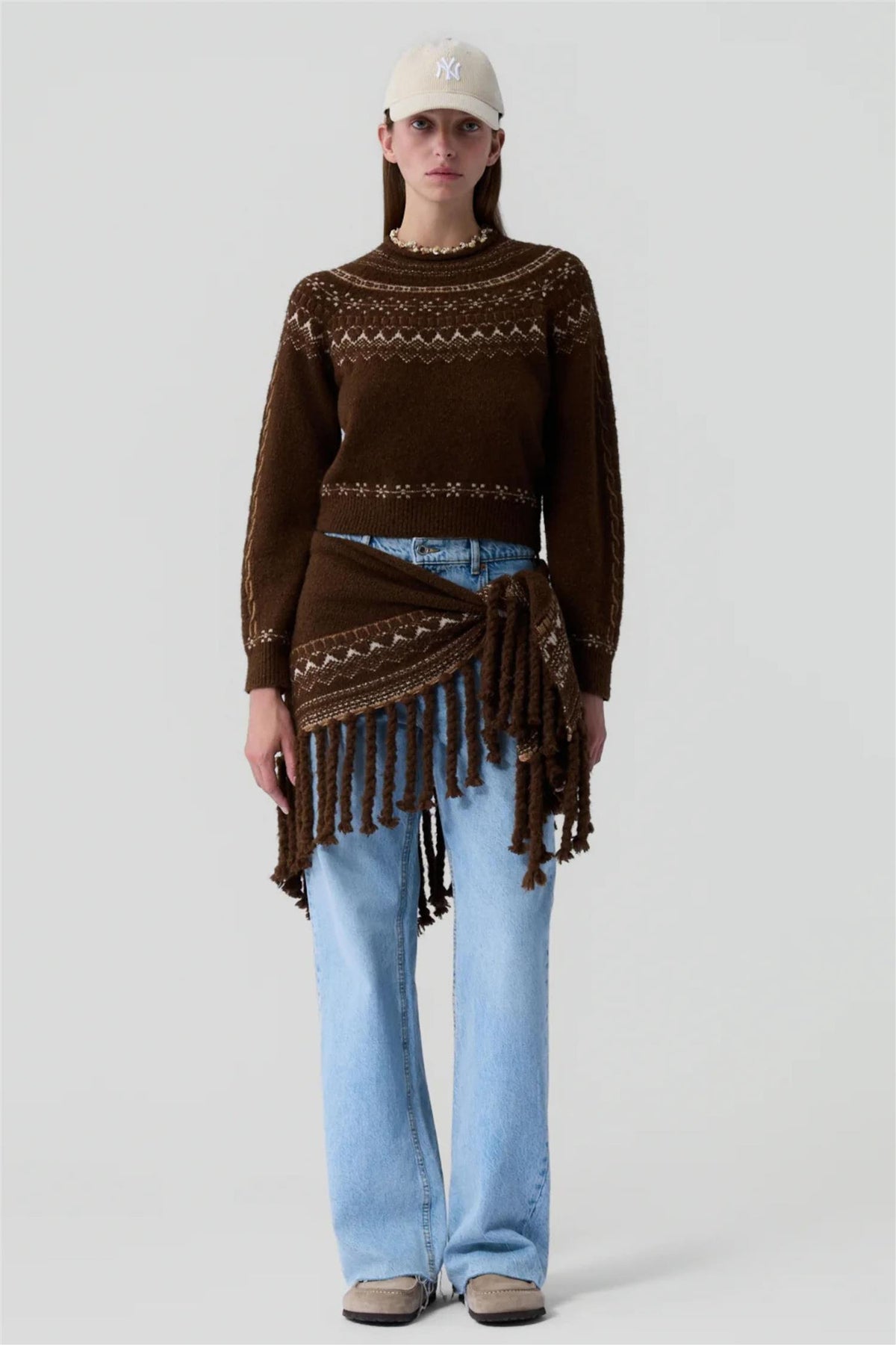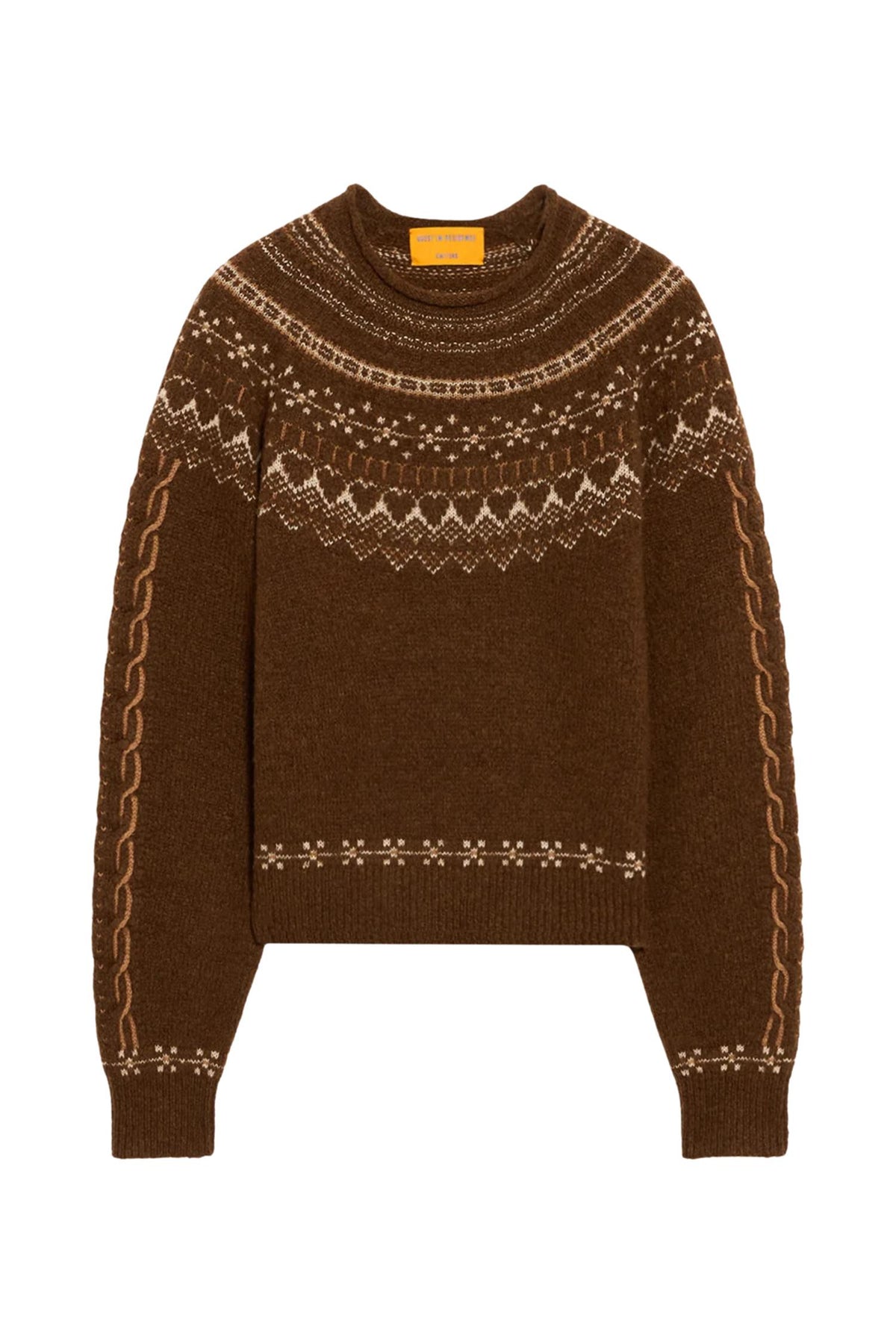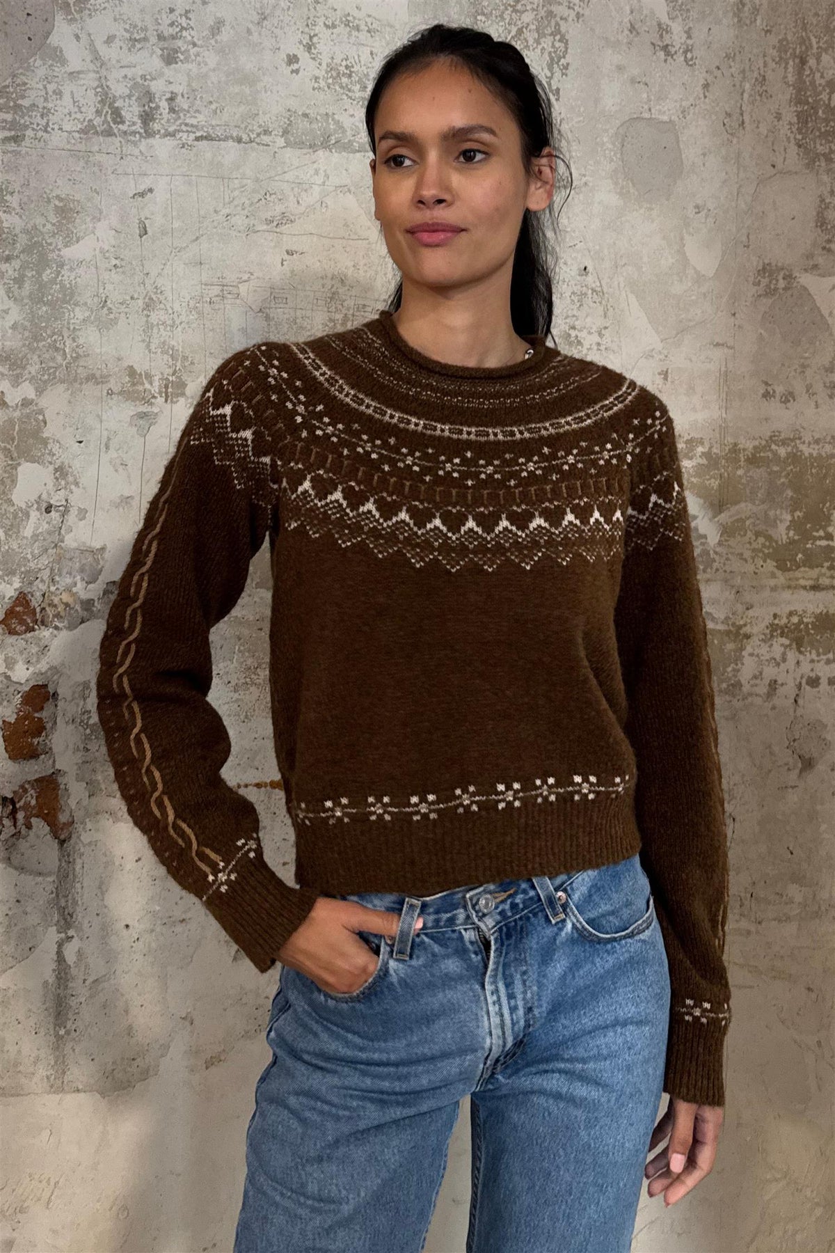 Crafted from a wool–cashmere blend and ultra-soft Cloud yarn, the Cloud Chalet Crew captures the charm of vintage alpine knits in a modern way. This women’s Fair Isle cashmere sweater features a slightly boxy silhouette that blends nostalgic patternwork with a soft, cozy texture.