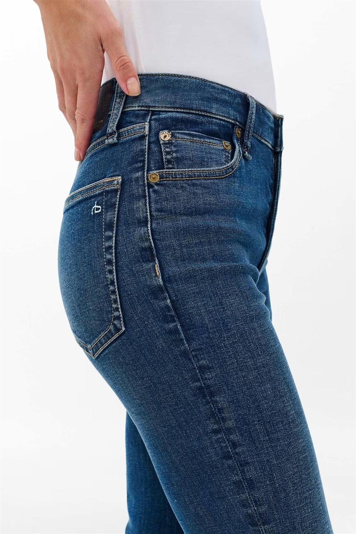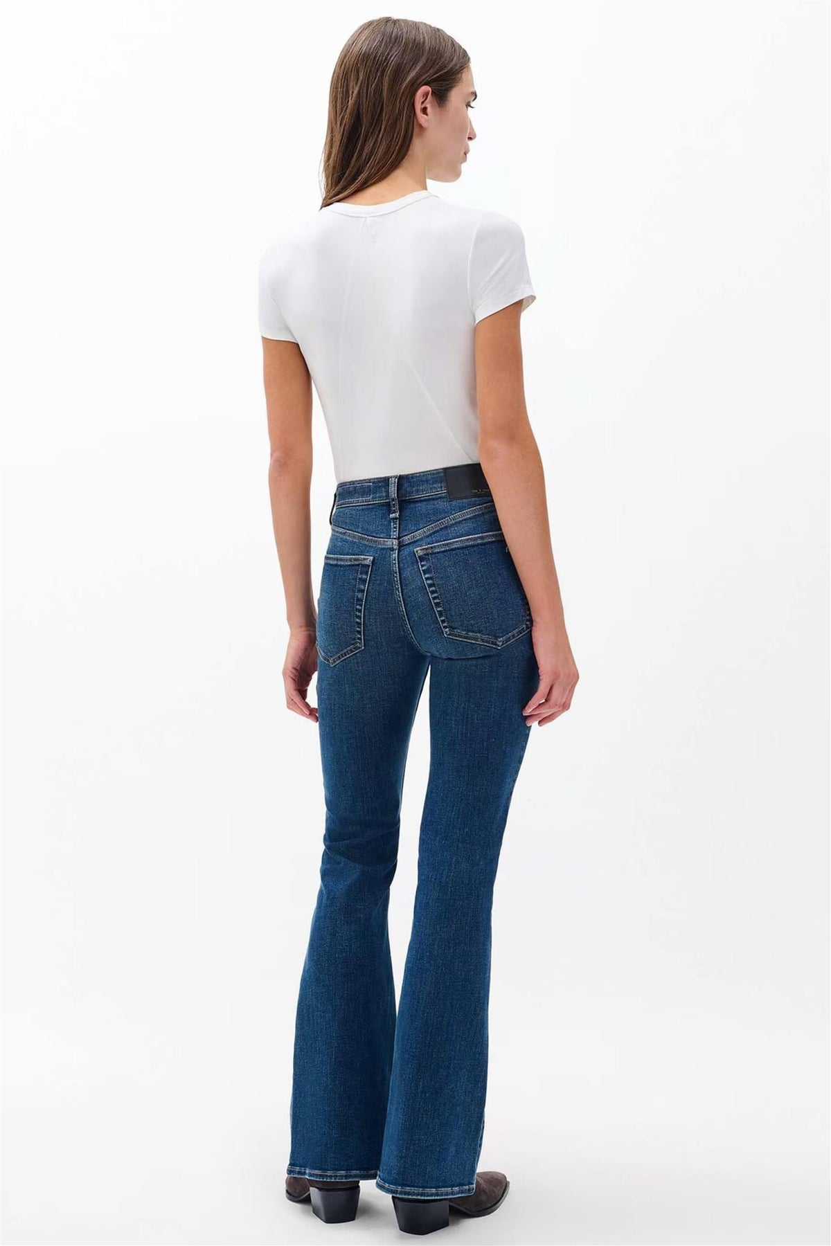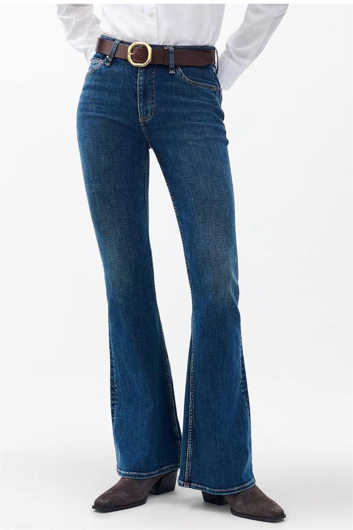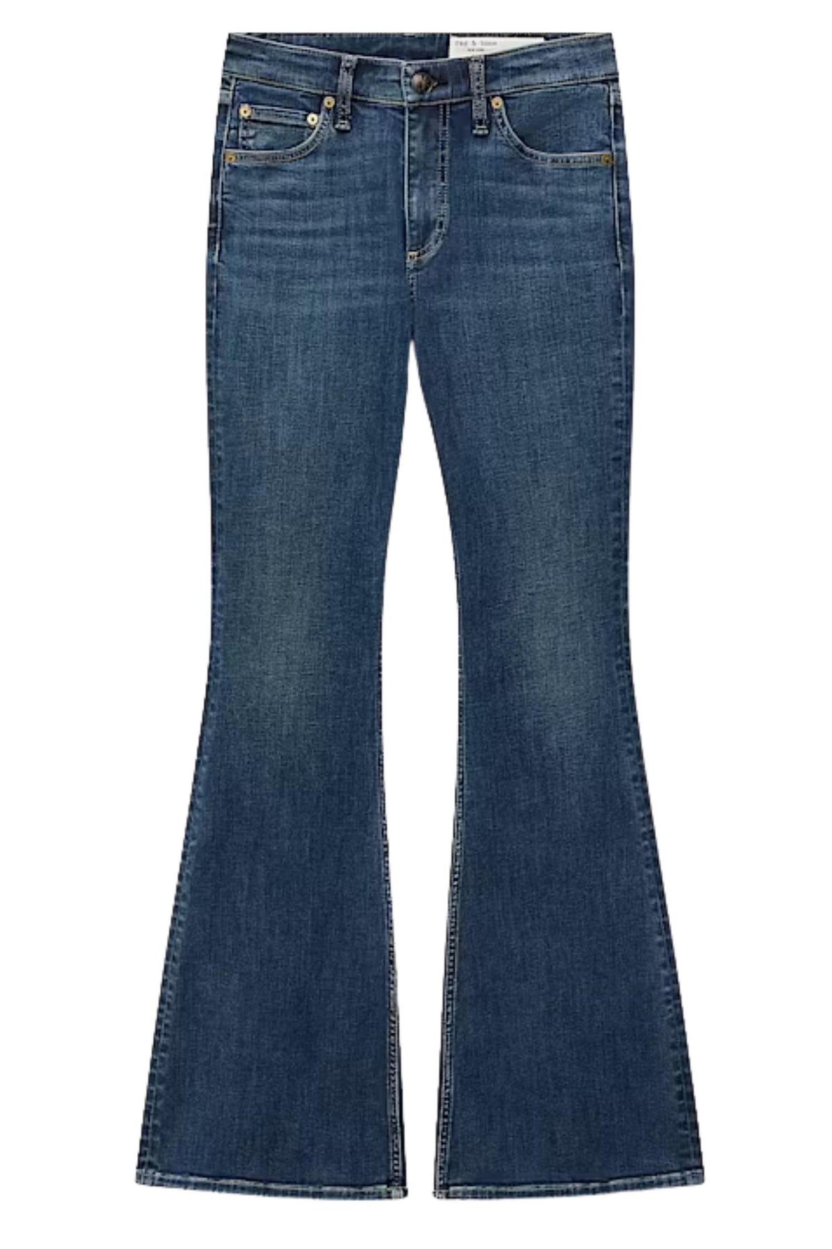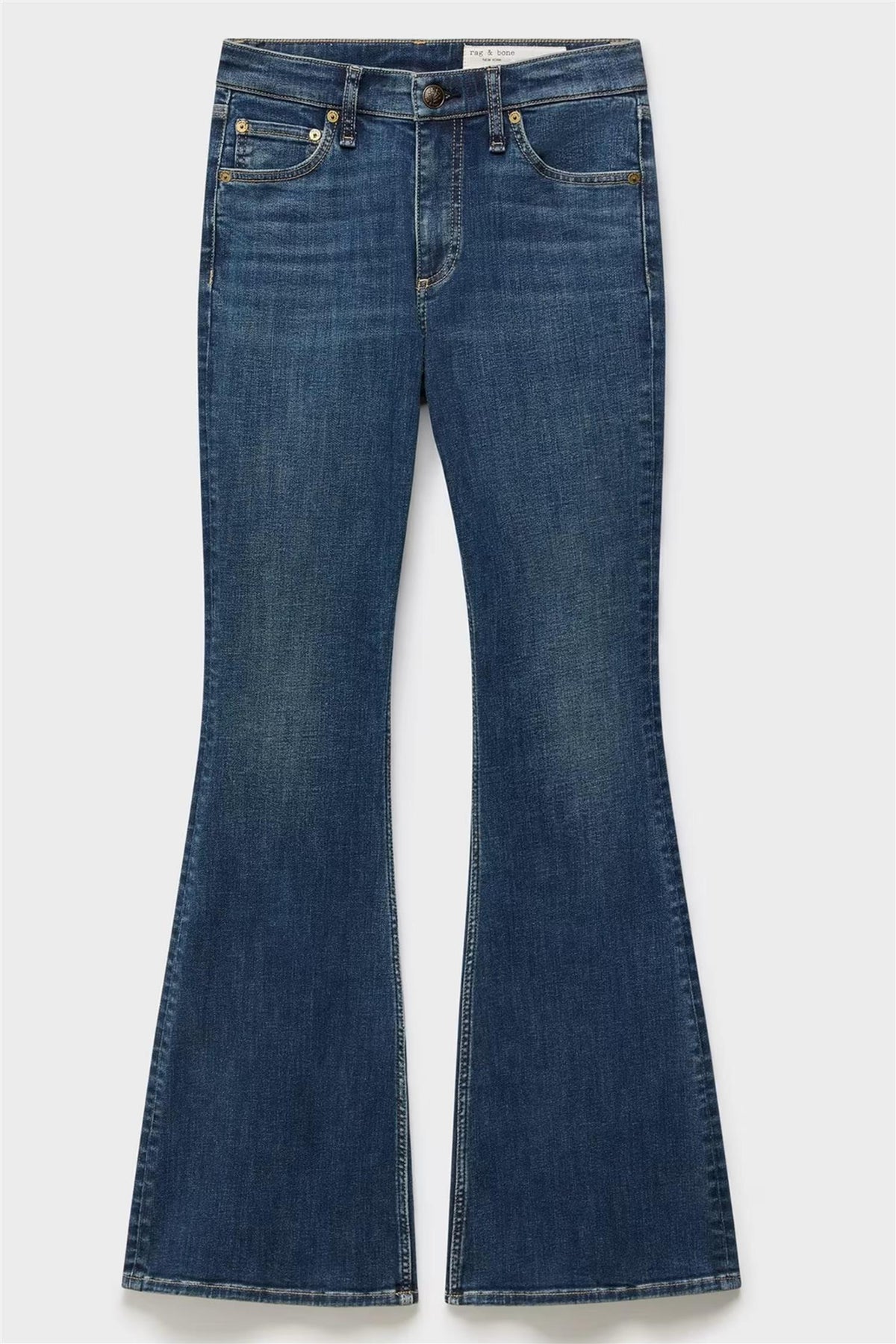 The Dahlia: Mid-rise flare jeans that are fitted through the thighs before gradually loosening into a wide, flared hem. Crafted from Rag&Bone's Flexi denim that smooths, sculpts, and stretches for a perfect fit anytime, anywhere. In Carlton, a dark indigo wash.
