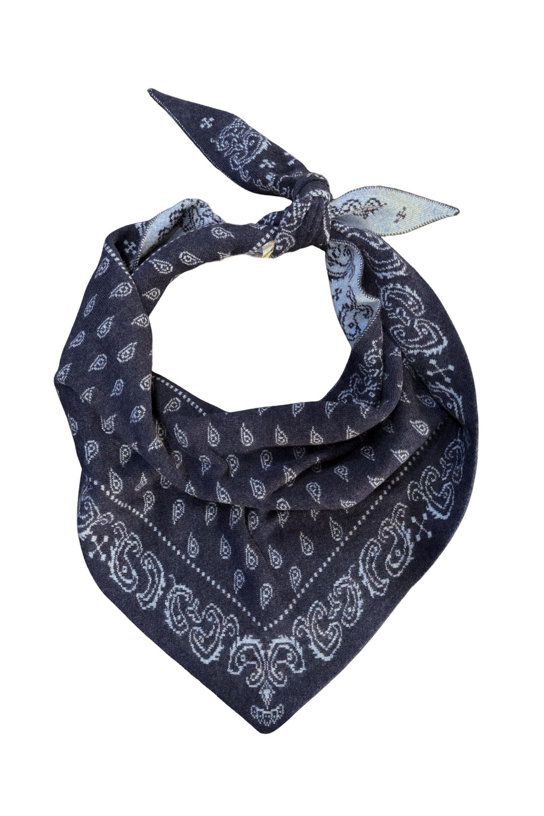 Paisley Scarf Quartet 80 cm. Navy & Sand