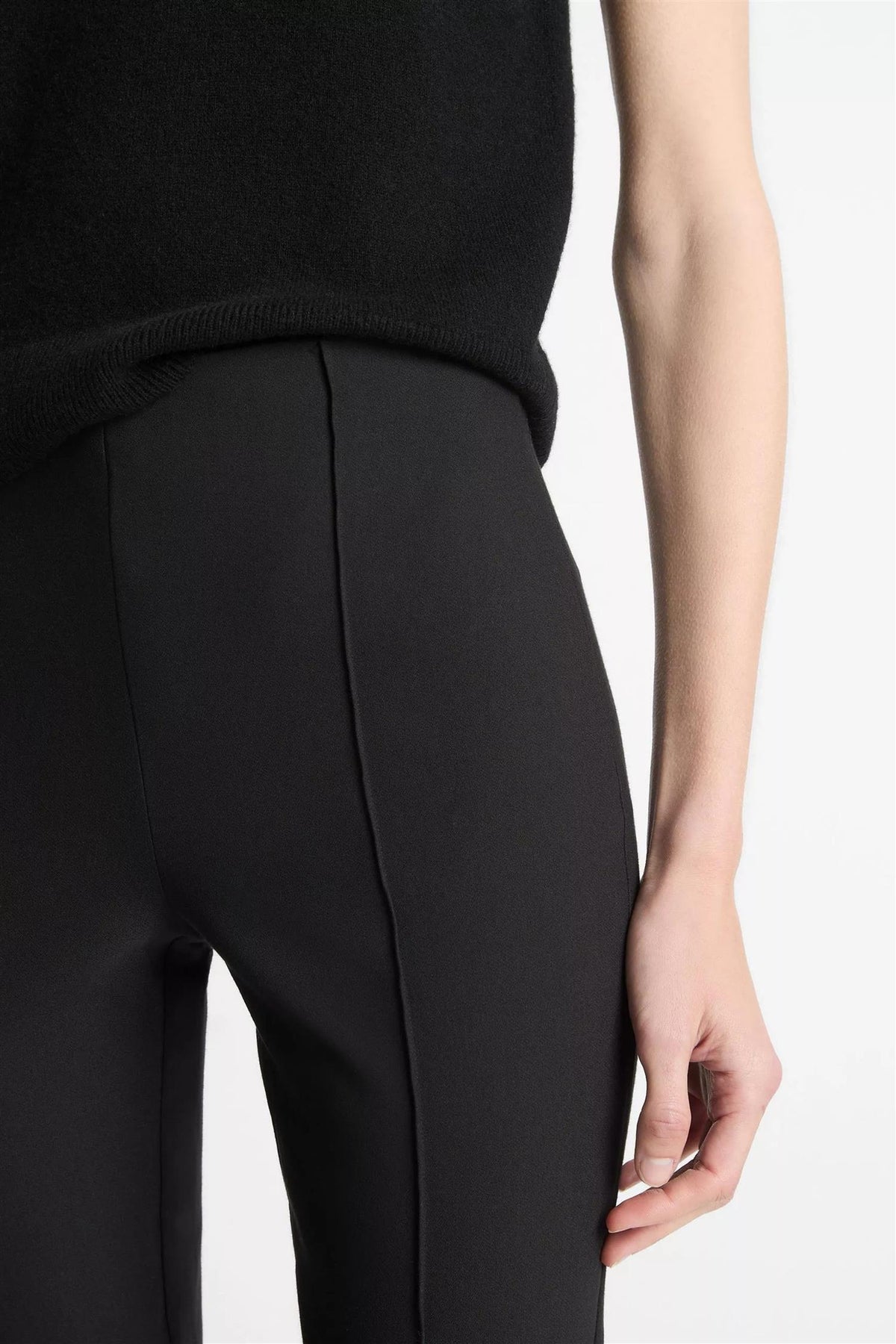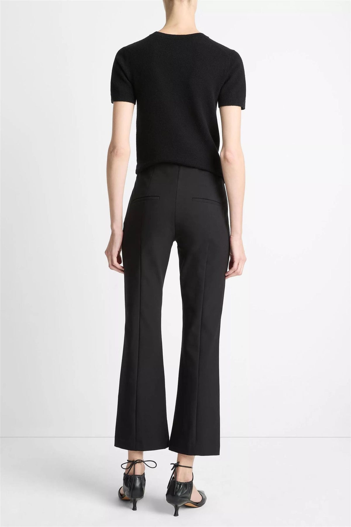 A foundational, versatile silhouette, our Niki pant is cut from an Italian cotton-blend bi-stretch fabric and finished with pintuck legs. Designed to sit at the natural waist, this pair fits close to the hips and thigh and softly fans out at the knee, hitting just above the ankle.