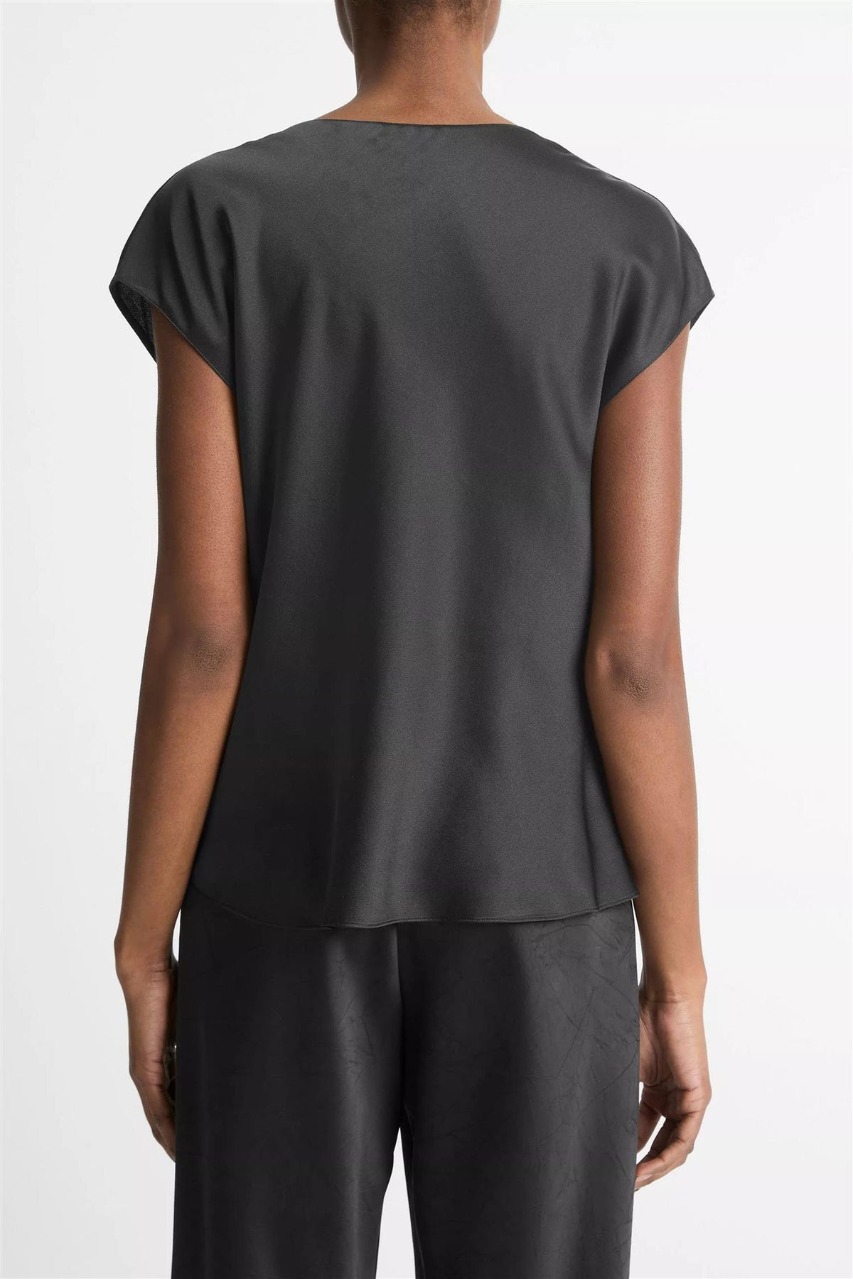 This relaxed silk satin blouse is cut with an easy, luminous drape and finished with a cowl neckline.
