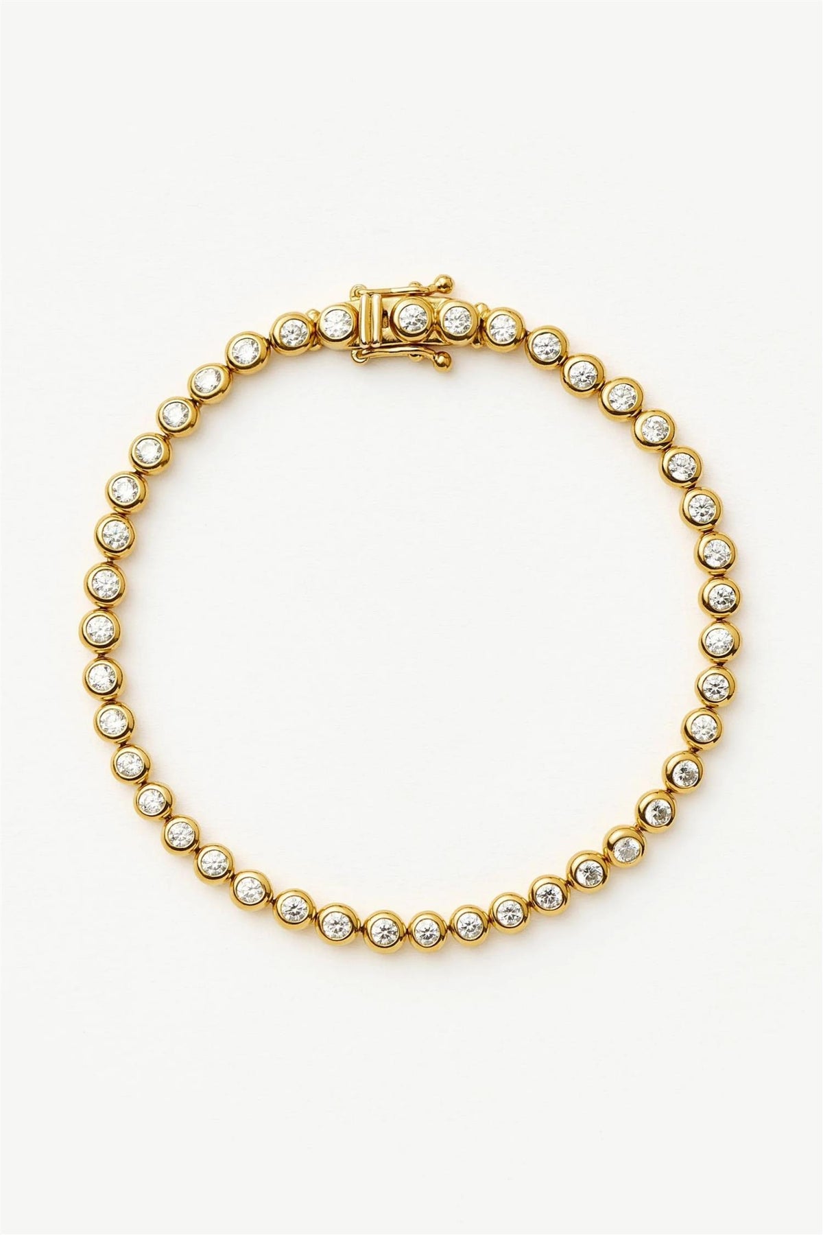 The ultimate luxe layer, this everyday gold bracelet features beaded detailing and is embellished with rounded cubic zirconia stones. Let it shine solo or team with chunky chains for an instant arm stack.