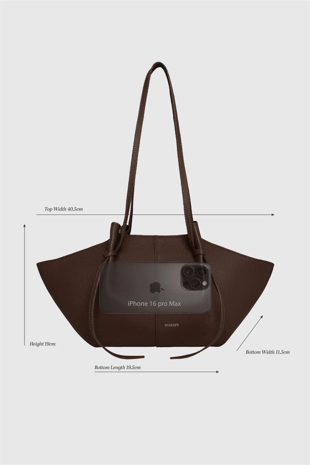 The iconic YUZEFI Mochi bag is a medium sized tote with a magnet closure.